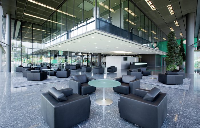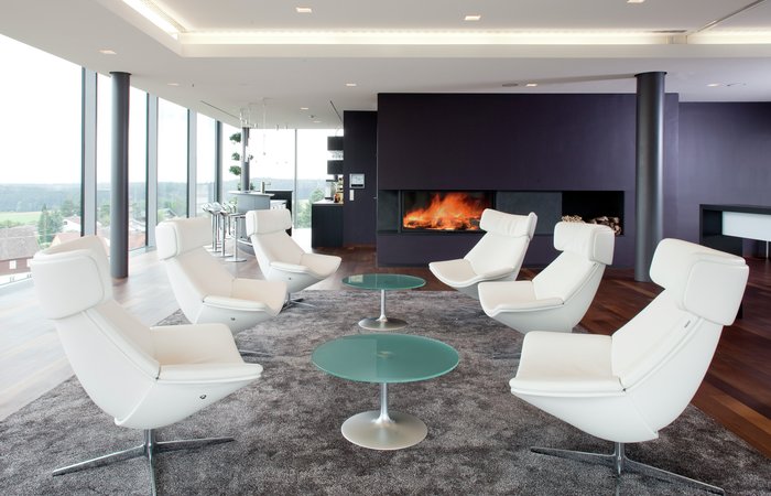 Hier sind sie richtig: Bei Arburg Maschinenbau in Lossburg finden sich die Farben des Corporate Designs in allen Bereichen des Unternehmens wieder – vom Chefbüro bis zur VIP-Lounge. Schon in der grosszügigen Halle wird der Besucher vom spezifischen Arburg-Grün empfangen. In enger Zusammenarbeit mit dem Architekten Mario Soler wurden der Empfang, Geschäftsführer- Büros und die VIP-Lounge gestaltet. Jetzt sitzt man dort auf ‚Circle‘‚ Nelson‘ oder ‚Oscar‘ von Walter Knoll.
