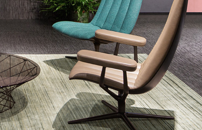 Healey Lounge Charakterstück. Die äußere Schale trägt das softe Polster – betont durch die markante Absteppung der Pfeifenheftung. Eine Hommage an die Sitze legendärer Classic Cars. Fließende Linien zeichnen präzise die Kontur. Eine elegante Spange fasst Sitz und Armlehnen. Tool for modern life: die breite, gepolsterte Armlehne. Leicht verschiebbar für Bequemlichkeit und als Ablage für Tablet oder Smartphone. Healey Lounge zeigt seine Persönlichkeit als Solitär oder in lockerer Runde – leicht, lässig-elegant, komfortabel, drehbar. Denn: Wie eintönig wäre das Leben ohne extravagante Charaktere?