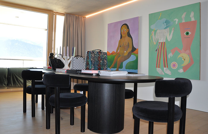 Bei ihrem ersten Besuch bei architare in Nagold hatte Sophie Herrmann bereits einige Gestaltungsideen und Möbel im Kopf, mit denen sie ihre neue Wohnung einrichten wollte. Nach dem ersten Gespräch entwickelte Barbara Benz ein stimmiges Gesamtkonzept, das diese Wünsche aufgriff und die vorhandenen Gemälde der Bewohnerin mit einbezieht. So wurden zum Esstisch „Moon“ von Gubi die Stühle „Fat“ von Tom Dixon kombiniert.