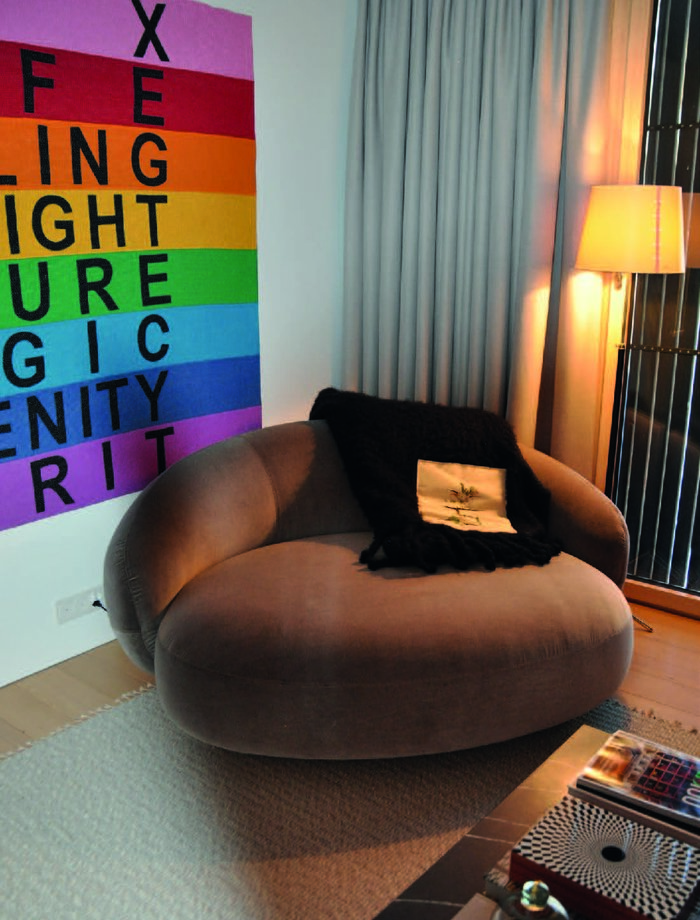 Für die Lounge-Area wählte Sophie Hermann die Sessel „Pascha“ von Gubi und die Couchtische „Plinth“ von Menu. Barbara Benz empfahl als Bezug den Samtstoff „Spritz“ von Rubelli. In Kombination mit einem Teppich von Kvadrat und der Stehleuchte „Pie de Salón“ von Santa & Cole entstand hier Sophies heutiger Lieblingsbereich in der Wohnung.