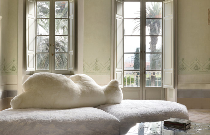 Den seit einiger Zeit zu beobachtenden Felltrend jedenfalls toppt der toskanische Fabrikant mit einem gigantischen Sofa von Francesco Binfaré. Man traut seinen Augen kaum. Räkelt sich auf „Pack“ nicht ein Eisbär mitten auf dem Sofa? Beziehungsweise ein Schwarzbär auf der dunklen Variante? Die Silhouette jedenfalls legt es nahe. Der gemütliche Allesfresser dient als breite Lehne, an dessen Kunstfell man sich schmiegt. „Pack“ jedenfalls braucht Platz. Zweimetervierzig auf dreisiebzig, um genau zu sein. Vor gerade 30 Jahren zeigte Edra die erste Kollektion „I nouvissimo“ und hat sich seither zu einem etwas schrägen, aber zugleich sehr vorzeigbaren Player der Möbelindustrie verwandelt, dessen Entwürfe in allen führenden Magazinen und Design-Sammlungen stehen. Wie also sollte das Unternehmen sein Jubiläum feiern? Am 30. Oktober 2017 jedenfalls gab es eine standesgemäße Gala auf der Triennale in Mailand mit Silvana Annicchiarico, Direktorin des Design Museums der Triennale. Und ein eigenes Buch mit dem klingenden Titel „Our Story – A Journey through Beauty“. Und diese Reise ist noch nicht abgeschlossen. Wir dürfen uns auch in Zukunft auf (und über) aufsehenerregende Entwürfe und neue technische Details freuen.