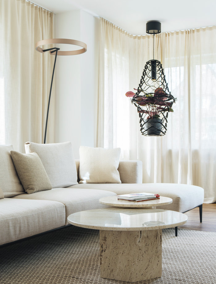 Fifty Shades of Beige: Die Vorstellung der Auftraggeberin war klar – Cremetöne, optische Ruhe und Harmonie sollten ihr neues Zuhause prägen. Das architare Team Stuttgart kreierte ein facettenreiches Interieur, das gekonnt mit Formen, Materialien und Stimmungen spielt.