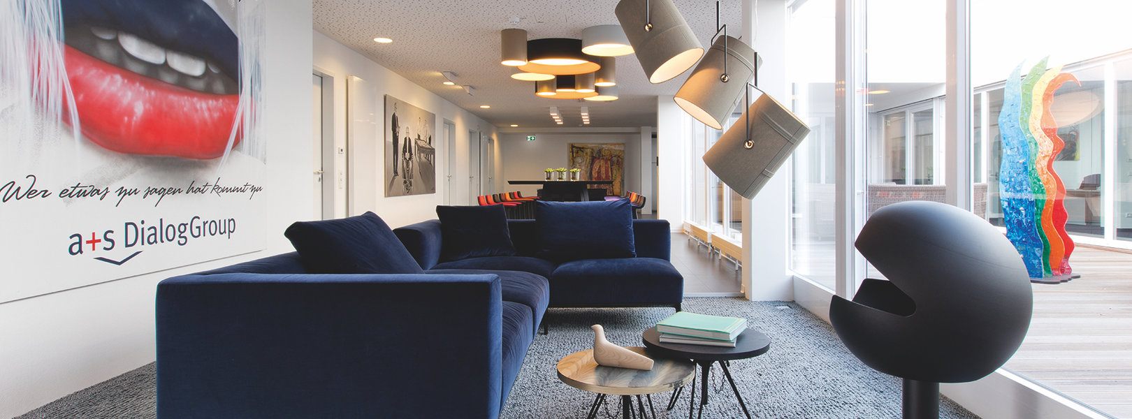 Stilechtes Get Together: Die Agenturräume von A+S DialogGroup Kommunikativ und repräsentativ wünschte sich a+s DialogGroup-Geschäftsführer Kai-Uwe Hesse Lobby und Lounge des neuen a+s DialogGroup-Headquaters in Ditzingen und beauftragte die Interior-Experten von Fleiner Möbel by architare mit der Ausstattung.