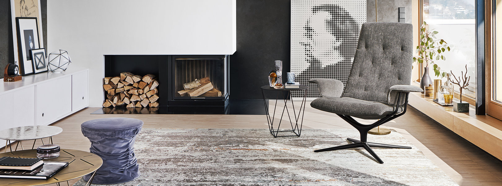 Neben den Möbeln machen Textilien den Wohlfühlcharakter im Wohnzimmer aus. Nachdem wir die aalglatte Oberfläche unseres Smartphones am Tag über 2.000 mal berühren, sehnen wir uns hier nach Haptik im Interior. Leder und Samt, beides Bezüge, die zum Anfassen einladen, zugleich elegant und repräsentativ sind, stehen 2018 auf der Favoritenskala ganz weit oben.