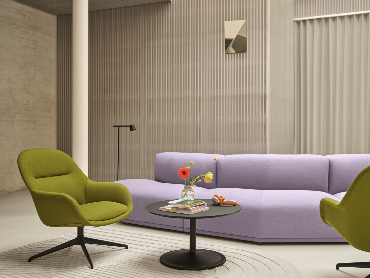 Muuto steht in dieser Auswahl fuer Sitzmoebel mit Komfort, Haltung und klarer Formensprache. Die Bildwelt zeigt den Hersteller in Objektbereich und macht sichtbar, wie sich die Kollektion in unterschiedliche architektonische Situationen einfuegt.
