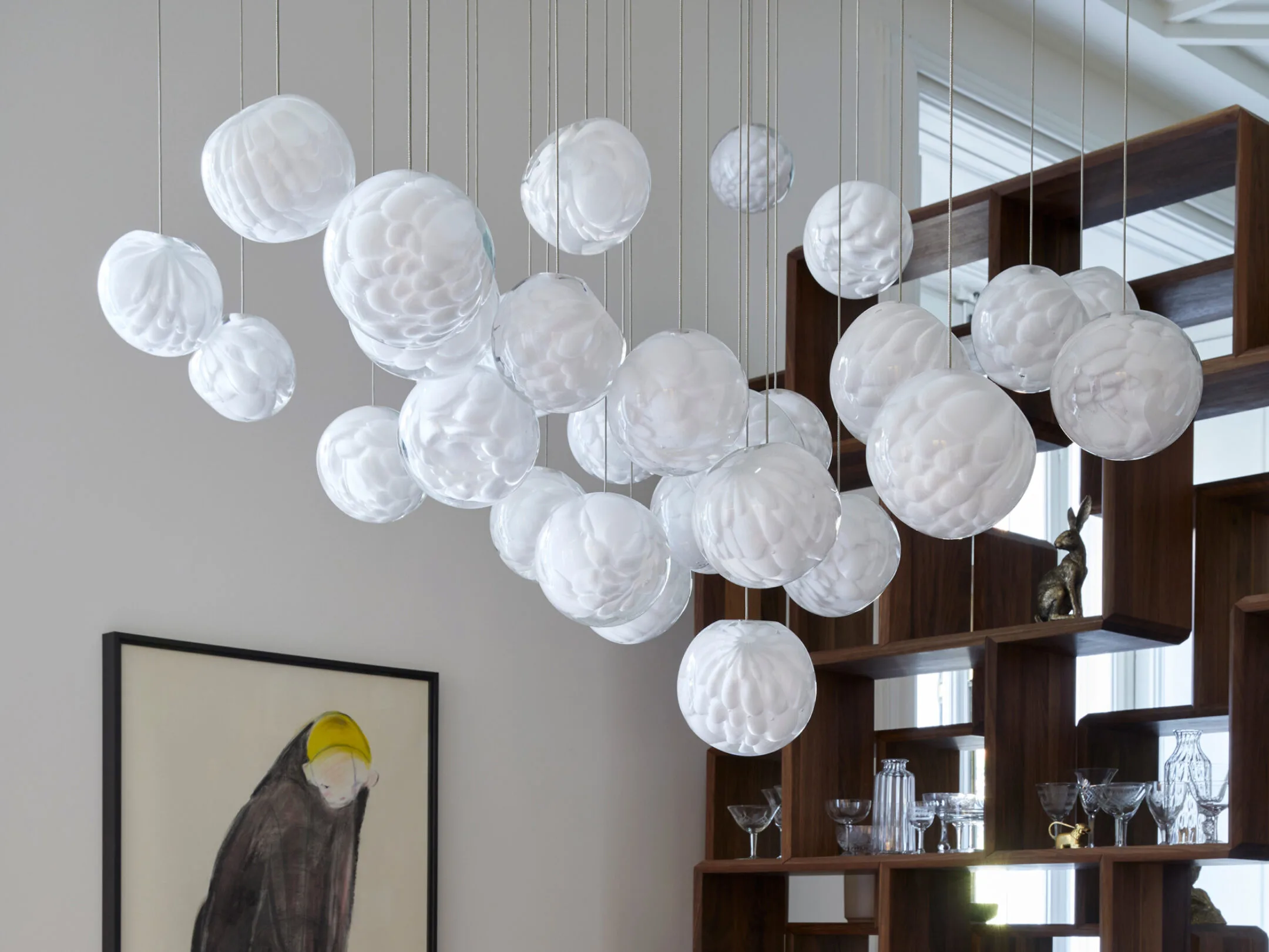 Die Kollektionen sind numerisch nach ihrer Entstehung in Arbels kreativem Prozess benannt. Weltbekannt wurde die Marke durch die Serie 14, deren gläserne Halbkugeln eine fast magische Lichtwirkung entfalten und als moderner kanadischer Designklassiker gelten. Ebenso ikonisch ist die Serie 28, bei der durch ein komplexes Verfahren der Luftdrucksteuerung in erhitztem Glas zufällige Formen und Hohlräume entstehen, die jede Leuchte zum Unikat machen. Bocci experimentiert leidenschaftlich mit Techniken wie dem Gießen von flüssigem Metall oder dem Blasen von Glas in hitzebeständige Keramikgewebe (Serie 73). Diese materialehrliche Sprache führt zu Lichtinstallationen, die Räume nicht nur beleuchten, sondern architektonisch strukturieren und emotional aufladen.