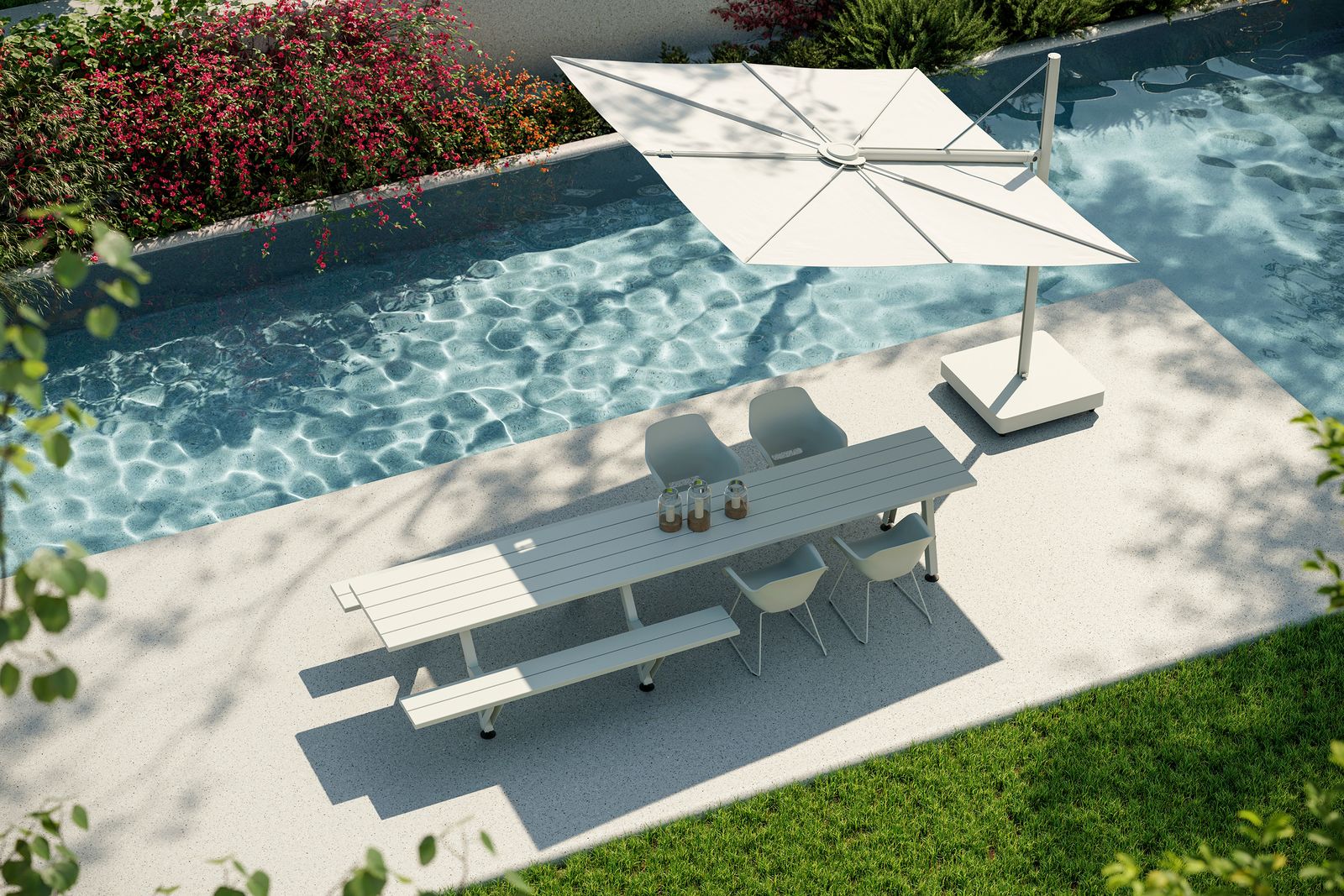 Weltberühmt wurde Extremis durch den markanten Gargantua-Tisch, der durch seine höhenverstellbaren Bänke maximale Flexibilität bietet. Weitere Meilensteine sind der flach aufgespannte Sonnenschirm Inumbra, die modulare Tisch-System-Reihe AMAi oder die grafischen Raumteiler Sticks. Die Materialwahl spiegelt oft die familiären Wurzeln des Gründers wider: Wynants ist gelernter Tischler, während seine Frau aus einer Metallbauerfamilie stammt. Entsprechend dominieren massives Holz und pulverbeschichtetes Metall, die eine hohe Robustheit und Langlebigkeit unter verschiedenen klimatischen Bedingungen garantieren.